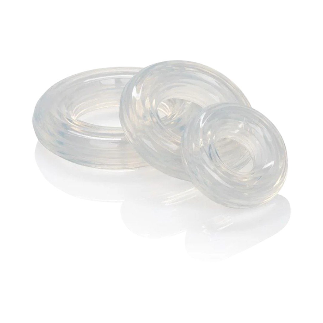 CalExotics Silicone Ring Set peeniserõngad – kvaliteetsest, nahal siidisest silikoonist erektsioonirõngaste komplekt, mis annab parema püsivuse ja täidlasema tunde ilma ebamugavuseta. Kolm erinevat suurust võimaldavad valida surve täpselt sinu rütmi järgi – ideaalne nii algajale kui ka kogenud kasutajale. 💪✨