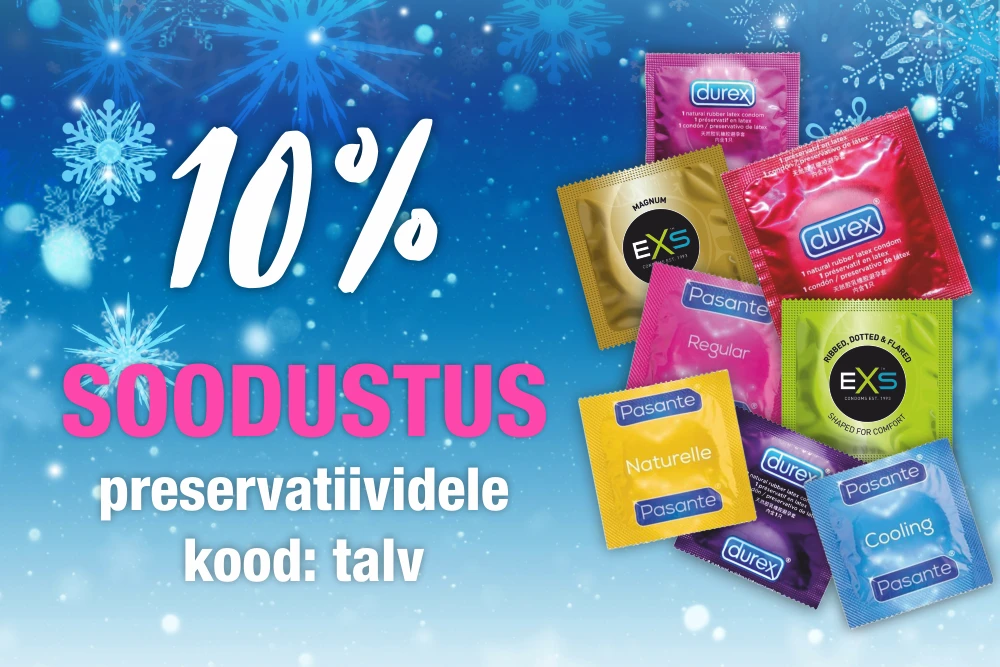 Если хотите открыть для себя больше, чем барьерные средства, посмотрите весь наш ассортимент интимных товаров: секс-игрушки, массажные средства, феромоны, одежда и аксессуары. Все заказы мы отправляем в нейтральной упаковке и быстро по всей Эстонии. Найдите идеи как для соло-игры, так и для пар, сохраняя фокус на комфорте и безопасности.