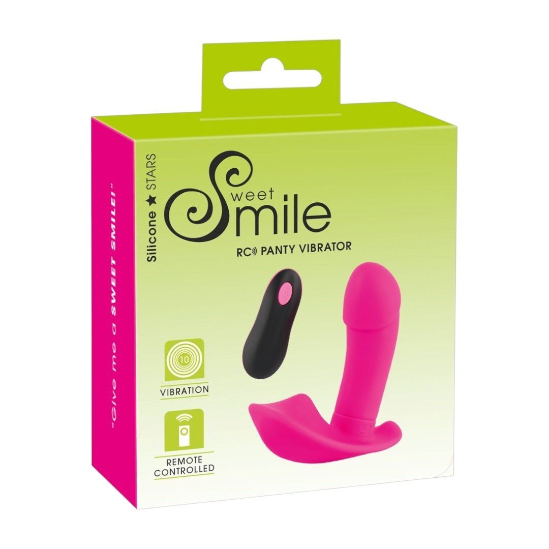 Sweet Smile Remote Controlled Panty Vibrator püksikuvibraator on diskreetne ja mänguline stimulaator, mis on mõeldud kandmiseks aluspesu sees ning mida saab mugavalt juhtida kaugjuhtimispuldiga. Pehme, kehale ohutu silikoon ja vaikne töö teevad selle sobivaks nii kodus kui ka avalikus kohas kandmiseks. Mitmed vibratsioonirežiimid pakuvad vaheldusrikkaid aistinguid – üksi nautimiseks või partneriga mängimiseks.